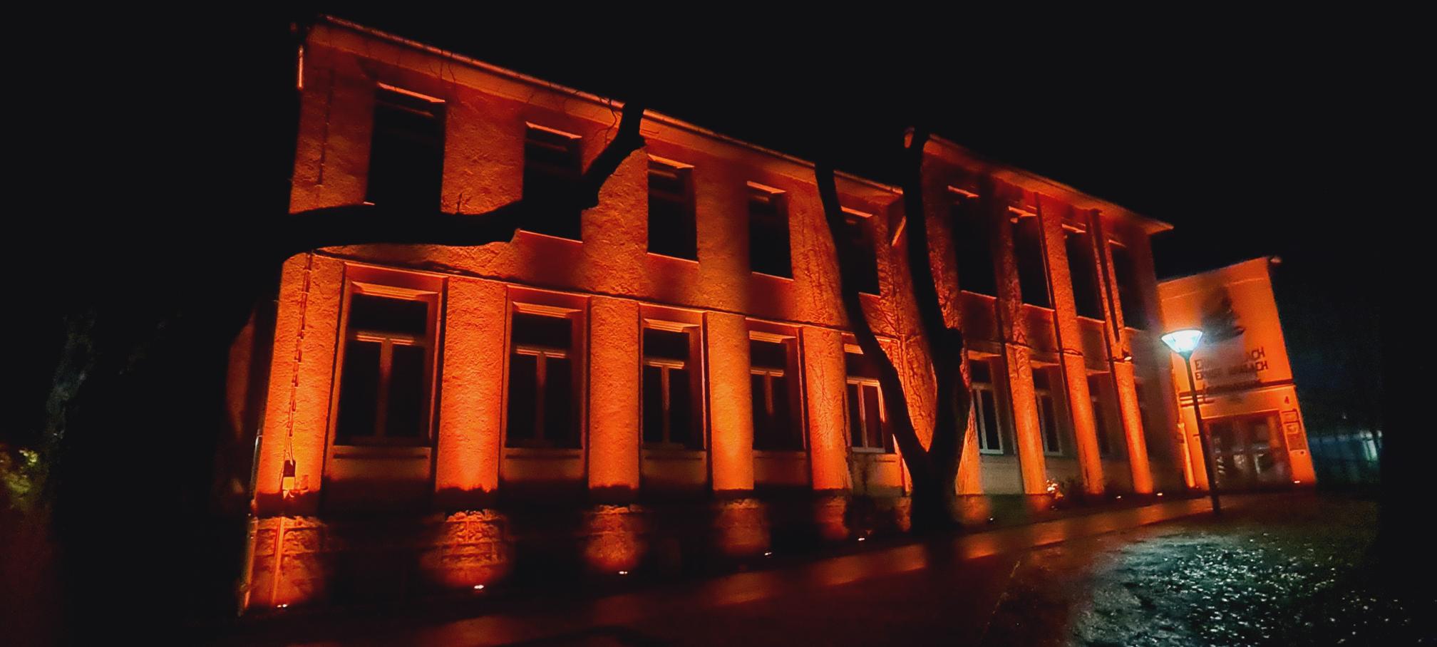 Am gestrigen Dienstag erstrahlte die Fassade des Kunst- und Musiktrakts in leuchtendem Orange. Dazu verlas eine Vertreterin der SV folgende Botschaft: